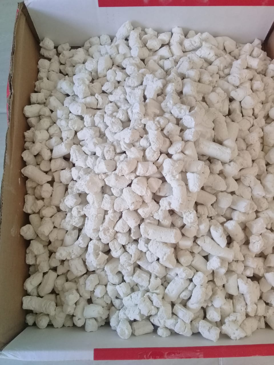 The term "kaolin noodle" is used because the material is shaped in long, extruded strands—similar to noodles—during processing. However, in reality, the shape is often irregular, crumbled, or fragmented, which makes it look more like sprinkles or shredded pieces (similar to "mises").